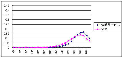 ![]() | (グラフ 1)情報サービス業の得点を表すグラフの頂点は全体平均と比して得点分布の高い右側にずれている |