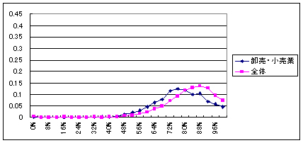 ![]() | (グラフ 2)卸売・小売業の得点を表すグラフの頂点は全体平均と比して得点分布の低い左側にずれている |