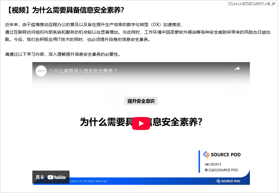 「他社のどのサービスでも、訓練メールのリンクをクリックしたら『あなたは訓練メールにひっかかりました』と表示されます。しかし多くのサービスはその警告表示だけで終わる中、ソースポッドではメール内のどういった点に気を付ければよいかというところまで説明してくれて、しかもその説明がとてもわかりやすいです。単に社内のリテラシー状況を確認するだけにとどまらず、教育の部分まで考えられたソリューションだと感じました」(山洋電気ITソリューション)