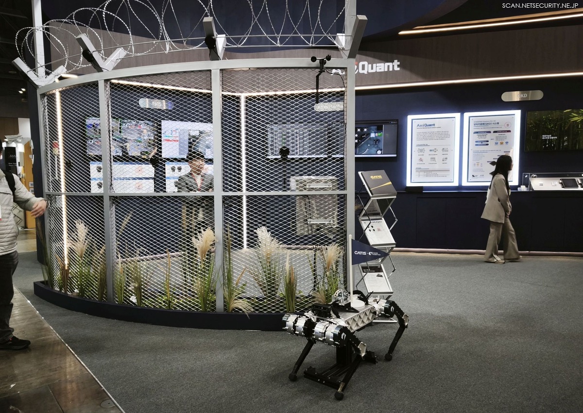 今風の言葉でいえば「フィジカルAIの各種実装展示」となる。しかし、SECONのSECONたる部分は、スマートな二足歩行ロボットの華麗な演舞、ではなく2世代くらい前の四足歩行ロボ、鋼鉄製のバリケード、電子柵、CCTV、防犯機器などに惜しみなく最新の生成AIがインストールまたはクラウド連携されているところだ。見た目はまったく洗練されていないかもしれないが、背後にあるネットワークやクラウドサーバは最先端という世界観を見ることができる。
