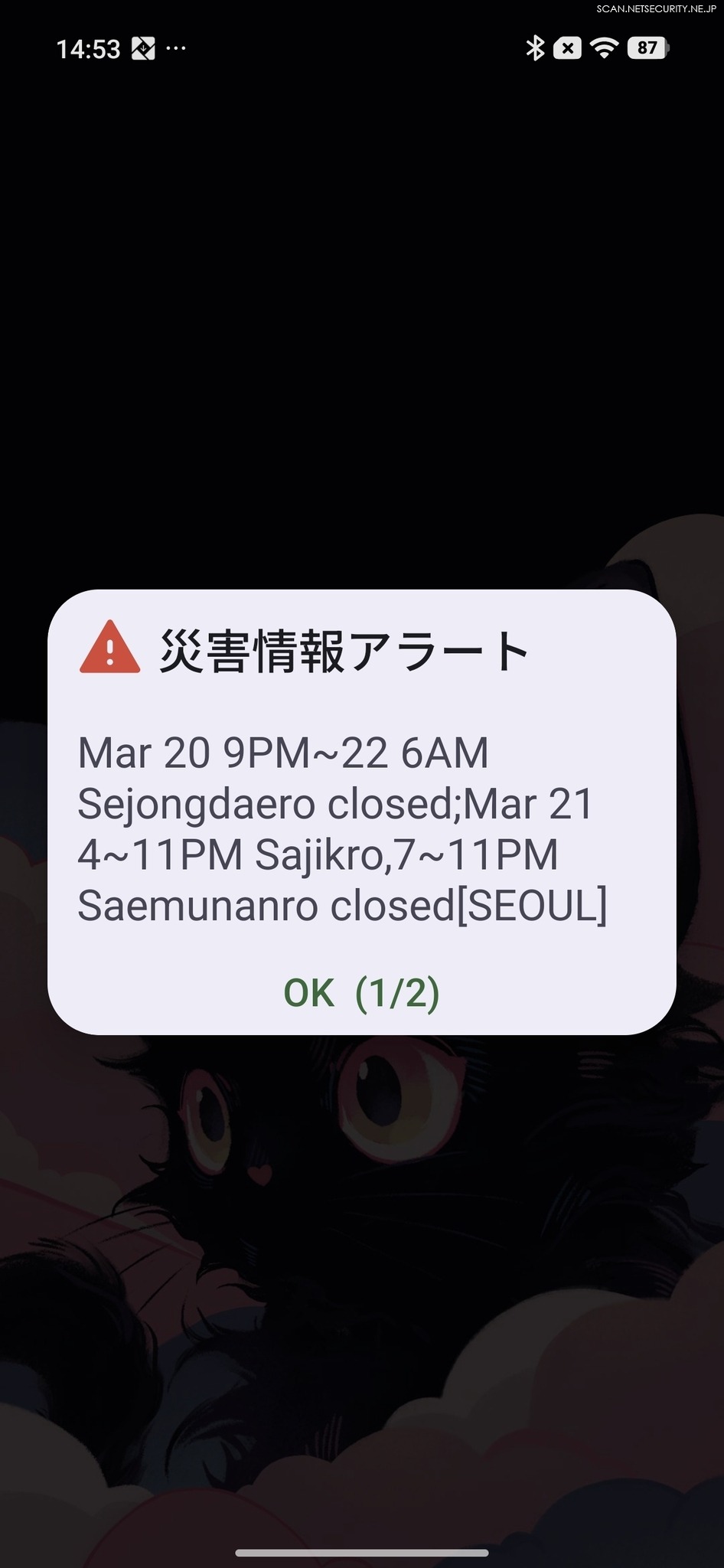 編集部の韓国取材のちょうど帰国日に、我々のスマートフォンに「緊急通報」が着信した。内容はソウル市内の道路封鎖に関する情報だ。あとで調べると「BTS」の復帰講演が翌日行われる影響で発生した道路封鎖だった。
